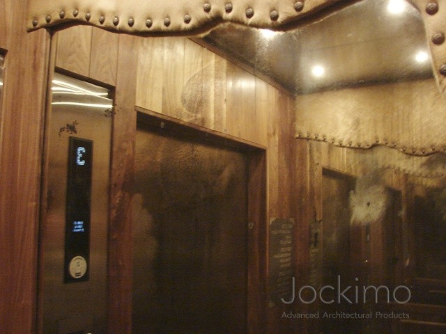 Our Tarnished Distressed MirrorUnique™ antique mirror glass is installed in the elevator cabs of this high end luxury hotel in Savannah, GA.