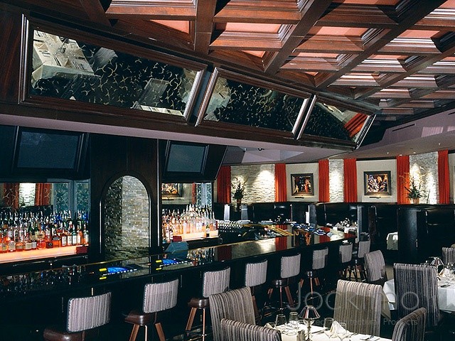 Jockimo Inc. provided all of the Gold Vein MirrorUnique™ glass throughout the interior of this high-end steakhouse in Las Vegas. Our Gold Vein glass is utilized above the bar and across the back walls of the restaurant. Jockimo Inc. can apply our Gold Vein to ANY of our antique mirrors.