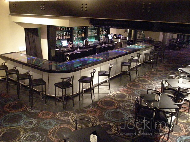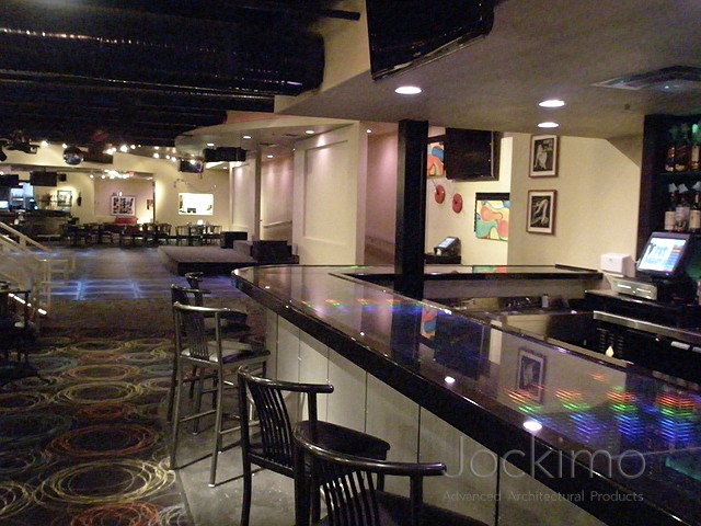 Client: Fat Daddy's - TXGlass: HologramGlass™ Hyperplaid designOur Jockimo HologramGlass™ Hyperplaid design glass is utilized as the bartop in this nightclub/bar in TX.