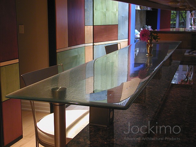 Our customers wanted their five children to participate in the design of their play area glass by providing hand prints. The hand prints were provided to Jockimo and in turn transferred to a custom mold providing a very special piece of glass for the family.