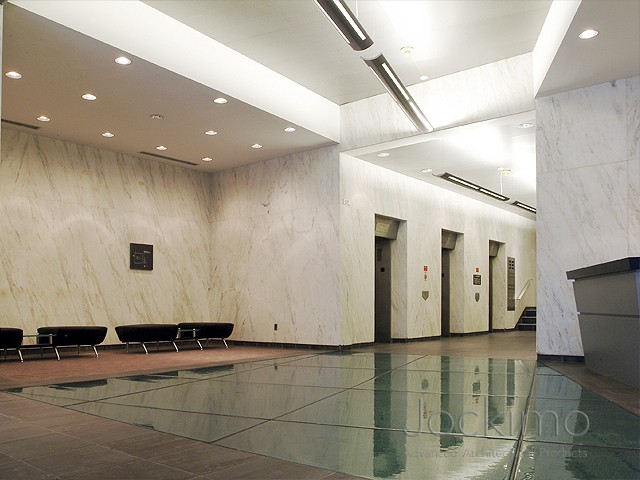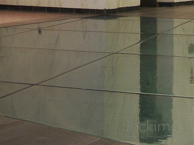 Our Ultimate Privacy™ glass flooring is utilized on the lobby of this project. The glass is installed on an existing sub-surface on top of neoprene sheets and flush with the surrounding marble creating a dramatic affect in the lobby of this commercial building. The glass is engineered to safely handle a 2,000+ lb. live load. Jockimo specified and sourced the neoprene sub-layer as well